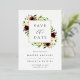 Unsere Blush Romance Hochzeit speichert das Datum umrahmt die Worte "Save the Date" mit einem eleganten Rahmen von bordeauxroten Marsala, Rosa und Elfenbein-Blume mit üppig grünem Blattwerk mit goldenen Folienakzenten. Personalisieren Sie Ihre Namen, das Hochzeitdatum und die Position darunter, und fügen Sie zusätzliche Details auf die Rückseite.