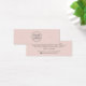 Hellrosa oder benutzerdefinierte Farbe Ohrring Mini-Produkt-Display-Karte mit zentrierter benutzerdefinierter Logo-Vorlage und Social-Media-Symbole. Die Ohrring-Hilfslinien können durch Hinzufügen und Entfernen von Leerzeichen im Vorlagenfeld und durch Verschieben des gesamten Elements im Entwurfstool eingestellt werden.