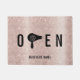 Moderne Blush Rose Gold Glitzer Bllow Dry Bar Hair Salon Offene Begrüßungstüren.