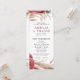 Dieses romantische Hochzeitsfeier-Programm besticht durch sanfte Rose, Akzente im Pampas-Gras und elegante Typografie in vertikaler Form. Die Vorderseite beinhaltet eine Begrüßungsbotschaft und einen detaillierten Zeitplan für die Zeremonie, während der Rücken an Ihre Hochzeitsfeierrollen angepasst werden kann. Ideal für rustikale Hochzeiten, Hochzeiten im Garten oder im Freien mit neutralem Blumenmotiv. Vollständig editierbar - personalisieren Sie Ihre Namen, Datum, Ort und Programmdetails. Koordiniert schön mit anderen Gegenständen in der Blush Rose Pampas Grass Wedding Suite, einschließlich Einladungen, RSVP-Karten, Signage und Menüs.