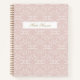 Experience soft elegance with this Blush Rose Vine Pattern Journal, featuring delicate white vine illustrations on a warm blush rose background. The design includes a beautifully coordinated customizable name in beige-gold, perfectly matching the golden spiral binding for a luxurious, feminine finish.