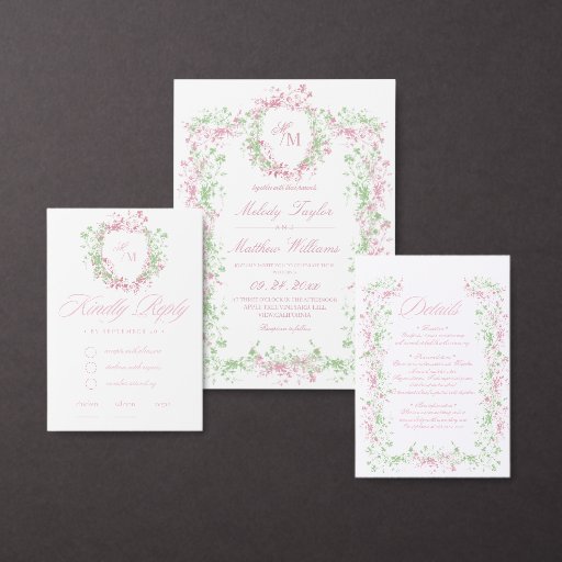 Blush & Sage Delicate French Wedding Einladung
