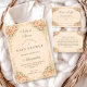 An ornate floral arch of peach and buttercream roses surrounds this romantic garden-inspired design, creating a soft heirloom aesthetic with timeless charm. Delicate greenery, layered blossoms, and a classic oval frame give it a refined Victorian feel while keeping the layout airy and balanced. Perfect for a spring celebration, garden brunch, or elegant afternoon gathering. The structured botanical border frames your event details beautifully while maintaining a graceful, storybook finish.