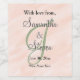 Grün Mit Monogramm, zuerst gegen weiche, pastellfarbene Wasserfarbenwäsche. Personalisieren Sie die Namen von Braut und Gräuel in dunkelgrau. Mit Liebe From, Wedding Date und Name der Weinflasche in schwarzem Text. Personalisieren Sie Ihre Hochzeit oder andere Veranstaltung. Party für Hochzeiten. Letzte Zeile kann mit einem anderen Text bearbeitet oder gelöscht werden. Original Artwork Design © TamiraZDesign.
