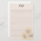 Sonnenblume, ausgekleidetes Schreibpapier, oben mit Monogramm-Initialen. Personalisieren Sie mit drei Initialen in dunkelgrau kursiv, am oberen Ende der Blumenstollen mit Linien.