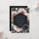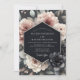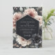 Experience a dramatic floral atmosphere with this elegant design. Lush, soft blush pink and cream peonies bloom against a dark, moody charcoal background. Hints of muted greenery and deep-toned blossoms add depth and romance, creating a sophisticated and tenebrous aesthetic for your special day.