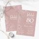 Rosa und weiß überraschen 80. Geburtstagseinladung. Modernes feminines Design mit botanischen Akzenten und typografischem Script-Schriftart. Elegante florale Einladungskarte perfekt für eine stilvolle weibliche Überraschung am Tag. Gedruckte Zazzle Einladungen oder Sofortdownload digitalen druckbaren Vorlage.