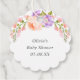 Günstige, individuell bedruckte Babydusche-Gastgeschenk-Tags personalisiert mit Ihrem Text. Dieses hübsche botanische Design zeichnet sich durch einen Aquarellrahmen aus Pfirsich- und Lavendelholz-Blume auf weißem Hintergrund aus. Verwenden Sie die Designwerkzeuge, um den Text anzupassen, die Schriftart und Farben zu bearbeiten oder um Ihre eigenen Fotos für eine elegante Federblütendusche für Babymädchen hinzuzufügen.