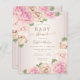 Dieses elegante Budget Wasserfarben Blumenmädchen Babydusche Einladung mit handgemalten rot rosa und taupe Rose mit Grün. Personalisieren Sie mit Ihren Party-Details in der modernen Rose Gold Skript Typografie. Entworfen von Susan Coffey.
