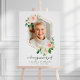 Das elegante Begrüßungsschild für das Foto zeigt farbenfrohe Blume in Rosa, Weiß und Grün mit einem sechseckigen goldfarbenen Rahmen. Klicken Sie auf die SCHALTFLÄCHE BLAUE DESIGN TOOL, um eine erweiterte Anpassung dieses Designs zu erhalten.