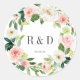 Blush White Bloral Wreath Monogramm Runder Aufkleber
