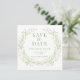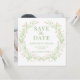 Genießen Sie eine Mischung aus Eleganz und rustikalem Charme mit unserem botanischen rett-the-date Foto. Das raffinierte böhmische Design wird durch einen atemberaubenden Blumenkranz in Rosa und Grün der Wildblume erhöht und bietet ein ideales Ambiente für Ihre Frühjahr/Sommer Feier.