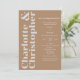 Diese atemberaubende Hochzeitseinladung ist ideal für Paare, die einen modernen und stilvollen Weg suchen, ihren besonderen Tag zu verkünden. Die Einladung bietet einen weichen Boho Brown-Hintergrund mit elegantem hellgrauem Schriftzeichen, während Braut und Bräutigam sich in einem kühlen und auffälligen Schriftart abheben. Auf der Rückseite kann ein Foto des glücklichen Paares hinzugefügt werden, um diese Einladung noch persönlicher zu machen.