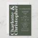 Diese atemberaubende Hochzeitseinladung ist ideal für Paare, die einen modernen und stilvollen Weg suchen, ihren besonderen Tag zu verkünden. Die Einladung besteht aus einem weichen, dunkelgrünen Hintergrund mit elegantem hellgrauem Schriftzeichen, während Braut und Bräutigam in einem kühlen und auffälligen Schriftart abseits stehen. Auf der Rückseite kann ein Foto des glücklichen Paares hinzugefügt werden, um diese Einladung noch persönlicher zu machen.