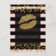 Blushing Pink & Black Stripes Gold Imitate Foil Do Postkarte