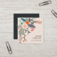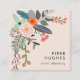 Die hellen, mit Blumen geschmückten Visitenkarten im einzigartigen quadratischen Format verfügen über ein Bouquet im bohischen Stil in Korallentönen und Grüntönen. Fügen Sie Ihren Namen und Firmennamen oder Titel/Beruf in der unteren rechten Ecke ein, vor einem blassrosa Hintergrund. Die Karten werden auf weißem Buchstaben auf einem kontrastierenden dunkelschwarzen Hintergrund umgeschaltet. Enthält drei soziale Mediensymbole in Schwarz und ein Feld für Ihren Benutzernamen.