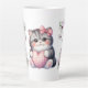Eine Abstrakte Blüte in Rosa, Grün, Weiß und Rose mit einem fetten Kittencenter Latte Tasse