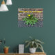 Dieses Poster zeigt ein Foto einer Leuchte Blume, die an einer Ziegelwand wächst, mit der positiven Nachricht "Bloom Where You Are Planted" in gelben Schriftzeichen.