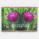 Schöne Tulpen Blüten , blumengeschmücktes Foto - Willkommenstext.