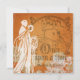 Blooms on Orange Once Upon a Time Hochzeitseinladungen in unserem beliebten 5,25 x 5,25 Zoll Quadrat. Diese wunderschönen Vintagen Design-Hochzeitseinladungen sind leicht mit Ihrer Zeremonie und Empfang-Informationen anzupassen, bevor Sie bestellen. Ein Hochzeitspaar der Silhouette mit Bouquet und märchenhaftem Schloss mit Text, der auf einer Vintagen Orange mit großer weißer Blume steht. Ihre märchenhafte Hochzeit beginnt mit diesen wunderschönen, alten Einladungen.