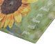 Diese Glasschneide-Tafel bietet ein Offset-Bild einer Sonnenblumenblüte, die bearbeitet wird, um einen interessanten Hintergrund passender Farben zu schaffen. Dazu fügte ich eine gesunde Erinnerung eines alten französischen Sprichwortes hinzu, das lautete: "Wo immer das Leben dich Pflanze, blüht mit Gnade." Das Schneidbrett misst ca. 11" x 8", ist 100% lebenssicher, hat nicht-geschliffene Gummifüße, die sicher bleibe werden können, und es wird mit handgepresstem Hartglas hergestellt. Zazzle hilft Ihnen gerne bei Fragen zu diesem Schneidebrett oder hilft Ihnen bei der Verlagerung dieses Designs auf ein anderes Objekt. Ich helfe Ihnen gerne, das Bild und die Formulierung korrekt zu gestalten.