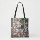 Blumenbeutel mit einem Foto von blühendem Pflaumenzweig auf dunkelgrünem Hintergrund. Ein wunderschönes Geschenk für Gärtner und Naturliebhaber. Bitte personalisieren Sie es mit Ihrem Monogramm. Für weitere Änderungen (Schriftart, Schriftart, Textposition) klicken Sie auf "Design bearbeiten".