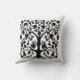 Kissen in einem stilisierten, blumengeschmückten Baum, in schwarz auf weißem Hintergrund