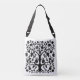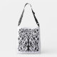 Tasche in einem stilisierten, floralen Thema, Baum des Lebens Design in schwarz auf einem weißen Hintergrund