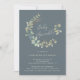 Diese elegante, geschlechtsneutrale Babydusche-Sprinkle-Einladung verfügt über einen einfachen, grünen botanischen Kranz mit Imitaten Goldlinienkunst in Form einer Blume und Blätter. Stilvolle Kalligrafie und moderner Text auf einem dunkelblauen grauen Hintergrund.