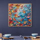 Dieses reich strukturierte abstrakte Kunstwerk fängt die Schönheit verstreuter, in Bewegung aufgehängter Blütenblätter ein und verbindet malerische Tiefe mit harmonischer Farbgebung. Dicke, fließende blaue Pinselstriche schaffen eine dynamische, fast ozeanähnliche Grundlage, während warme Blütenblätter in Korallen-, Krimson-, Gold- und sanften Rosatönen über die Oberfläche treiben. Die geschichtete Pinselstruktur verleiht dem Werk eine taktile, fast skulpturale Qualität, die lebendig und emotional ansprechend wirkt.