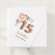 Für eine elegante und weibliche Quinceañera, 15. Geburtstagsfeier. Ein schick weißer Hintergrund. vorne: Dekoriert mit einer Rose Gold und rot rosa Rose Blume, florale, grüne Eukalyptus-Blätter, Sprigs, Grün und Imitat Goldsprigs. Personalisieren und einen Namen. Schwarze und goldene Buchstaben. Der Name ist mit einem modernen handgeschriebenen Stilskript geschrieben. Nummer 15 wird mit einem goldenen Schriftart im Ballonstil geschrieben. Zurück: Blumenstrauß und Ihr Dank, Name.