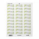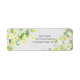 Blätter und kleine, weiße Gänseblüten auf hellgrauem Hintergrund