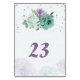 Romantische blaue und violette Blumen Grüne Blätter botanische Tischnummer Karte