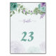 Romantische blaue und violette Blumen Grüne Blätter botanische Tischnummer Karte