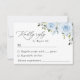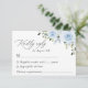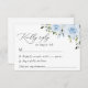 Vervollständigen Sie Ihre Hochzeitssaison mit dieser stilvollen RSVP-Karte. Das Design ist mit staubblauen Aquarellfarben-Blume und Grün auf weißem Hintergrund gestaltet.