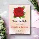 Diese elegante, einfache kalligraphische Blumen-Hochzeitseinladung eignet sich für eine moderne Blumenhochzeit im Sommer. Das romantische minimalistische Design mit Red Bloom blush rote Rose Blumenehen Sichern Sie das Datum Einladung