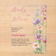 Ein klarer, transparenter Hintergrund. Die Wildblumen sind in Rosa, lila und gelb gehalten. Personalisieren und fügen Sie den Namen der Mutter zu sein und Party-Details. Text: Baby in Blüte.