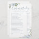 Unterhalten Sie Ihre Gäste mit diesem lustigen "Over or under" Brautparty-Spiel, mit romantischen Aquarellblumen in staubigen Blau- und Salbei-Grün, und stilvollen modernen Drehbüchern, einfach und elegant, ideal für das moderne boho Brautparty, botanische Garten Hochzeiten Partys. Sehen Sie sich alle Brautparty-Spiele an.