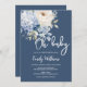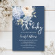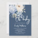 Blütendusche aus dunkelblauen und weißen Blumen Einladung