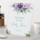 Oh Baby Lila Blütendusche Begrüßung Pedestal Schild mit Navy Blue Text und Aquarell Blume
