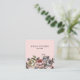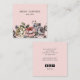 Handgemalt Stil whimsical vivivid Blumen blüht auf einer staubigen rosa einzigartigen quadratischen Visitenkarte mit Ihrem Namen und Titel. Pfirsichfarben, Rose, Grün, Blau und Pastellviolett. Passen Sie die Einstellungen auf der Rückseite der Karte an. Ihr Name und Titel sind farbig, ein Social Media Icons auf der Rückseite in einem pfirsichfarbenen Rosa, um den Floralen zu entsprechen. Geeignet für viele Beruf wie Florist, Innenarchitekten, Hochzeitsplaner und Gärtner.