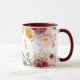 Trendy schicke botanische Blumenkaffeemaschine mit Blumensträußen aus Orange, dunkelroter Bordeaux und Rosa-Rosa-Rose mit grünen Blätter und Blattwerk, von Hand gezeichnet Zweige und ein elegantes pastellrosa Schriftzeichen Monogramm / Name Initial. ++++++++++++++ Einfach mit Ihrem Buchstaben personalisieren! +++++++++++++ könnte ein niedliches Geschenk für sie sein!