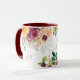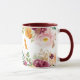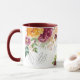 Trendy schicke botanische Blumenkaffeemaschine mit Blumensträußen aus Orange, dunkelroter Bordeaux und Rosa-Rosa-Rose mit grünen Blätter und Blattwerk, von Hand gezeichnet Zweige und ein elegantes pfirsichfarbenes Monogramm / Name Initial. ++++++++++++++ Einfach mit Ihrem Buchstaben personalisieren! +++++++++++++ könnte ein niedliches Geschenk für sie sein!