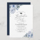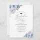 schlichte, elegante schwarze Schrift und staubige blaue Blumen. Text und Farben können bearbeitet werden.