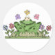 Der grüne gepunktete Frosch sitzt auf einem Felsen, der zum Mittag gewartet wird, aber es gibt keine Fliegen, nur viele hübsche Schmetterlinge!