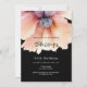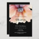 Eine moderne, stilvolle und glamouröse Einladung für eine 50. Geburtstagsfeier (oder jedes Alter). Schwarzer Hintergrund, mit einem großen Pfirsich und lila, wasserfarbener Blume dekoriert. Der Name wird mit einem handgeschriebenen Stil-Skript geschrieben. Personalisieren Sie Ihre Party-Daten und fügen Sie sie hinzu.