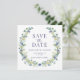 Dieses botanische, rustikale Foto mit seinem eleganten Boho-Design und einem marineblauen Blume-Kranz besticht durch seine rustikale Eleganz.
