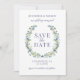Erleben Sie Raffinesse mit dieser raffinierten und zeitgenössischen rustikalen Save the Date Foto Einladung. Dieses elegante Design, das durch einen zarten Kranz mit blauen und gelben Aquarellblüten verstärkt wird, verleiht der Blume eine weitere Personalisierung, indem es auf der Rückseite ein Foto von zwei Personen zeigt.