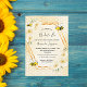 Elegante, lustige Sommerdusche. Gelber, weißer Hintergrund mit Wabenmuster. Mit einem Imitat goldener geometrischer Rahmen. Die Blume, der Hibiskus und die Hummeln sind mit hellgelben, cremefarbenen tropischen Blumen geschmückt. Mit dem Text: Bride to Bee und der Name der Braut vorne geschrieben mit einem modernen handgeschriebenen Stil Skript. Schwarze Buchstaben. Zurück: gelbes weißes Wabenmuster.