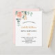 Eine elegante Einladung für eine 50. Geburtstagsfeier (oder jedes Alter). Ein schick weißer Hintergrund. Dekoriert mit einer Rose Gold und rot rosa Rose Blume, florale, grüne Eukalyptus Blätter, Sprigs, Grün und ein Imitat Gold Sprig. Personalisieren und Name und Party Details. Schwarze und goldene Buchstaben. Der Name ist mit einem modernen handgeschriebenen Stilskript geschrieben. Zurück: Rose goldene Hintergrundfarbe, Postkartendesign. Tipp: Wenn Sie es nicht so gewollt haben, dass es wie eine Postkarte aussieht, klicken Sie auf Anpassen, gehen Sie auf die Rückseite und entfernen Sie den Trenner und posten Sie die Briefmarke.